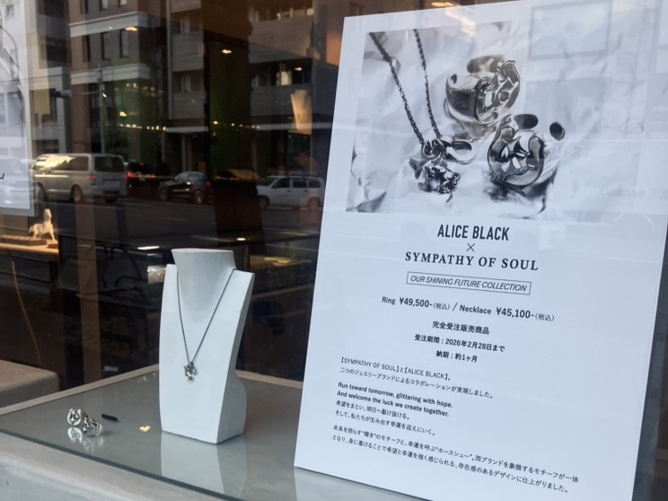 どうも、S.O.S fp恵比寿本店 森です! 本日は受注期間残り僅か! 【SYMPATHY OF SOUL】と 【ALICE BLACK】によるコラボレーションを改めてご紹介いたします。 この機会を逃すと、入手困難なスペ