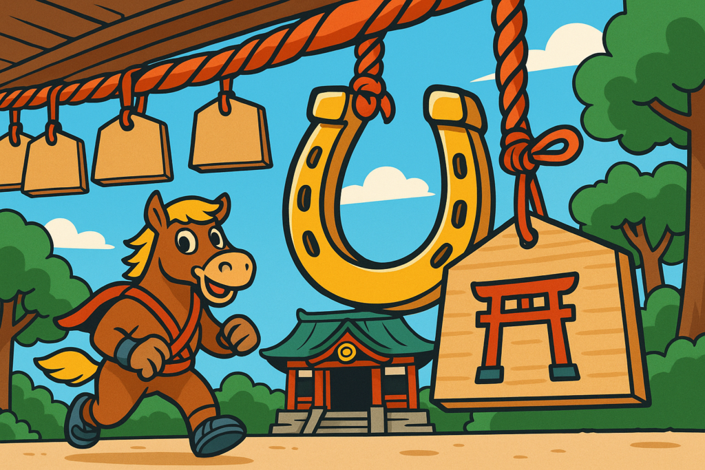 神社の馬文化:神馬を祀る風習があり、蹄鉄や馬具を奉納する例も。今も「絵馬」が残っているのは、その名残。