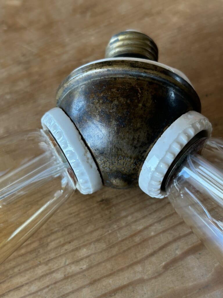 こちらは1900年代初頭にアメリカで製造されていた複数の電球を付けられるソケットになります。