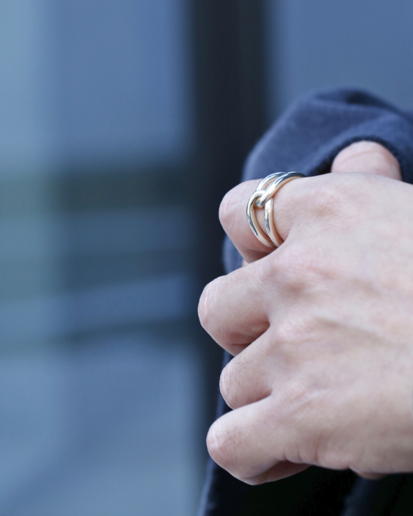 曲線が重なり合うことで、立体的な造形美を描く Twine Ring。
